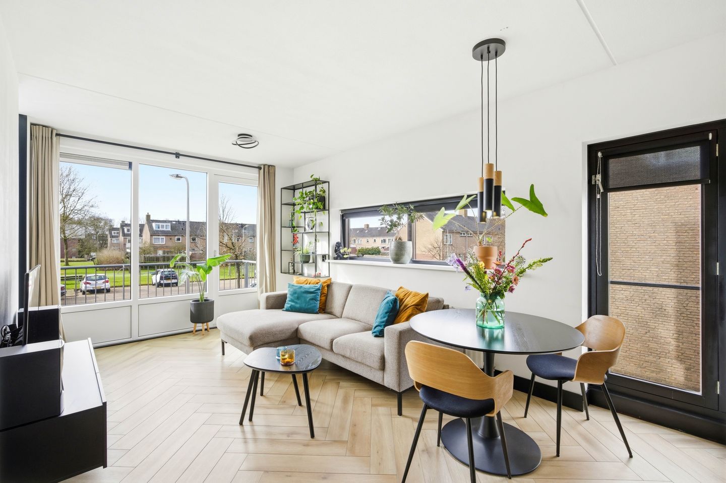 The homeowners' association (VvE) recently replaced the entire front facade (from the living room to the roof) with a maintenance-free uPVC façade with large windows. This not only provides a modern look but also extra light, comfort, and sustainability.