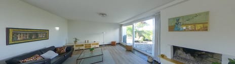 You enter the house via the hall with cloak area and a luxury, wall-hung toilet with integrated bidet/cleansing function. The living area with open kitchen is best described as a ballroom of approximately 75 m², featuring a fireplace and beautiful natural light through the large side window and the additional windows in the front façade. A new PVC floor has been laid. Both the living room and the kitchen have sliding doors to the garden; the sliding door from the living room opens to the part of the garden with particularly favorable evening sun. The kitchen is fully equipped with built-in appliances, including an induction hob and an oven, and has a generous island. From the kitchen there is access to the utility room. The utility room has its own entrance from the front garden; here you will find the connections for a washing machine and dryer.