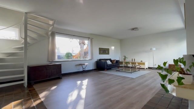 Je betreedt de woning via de entreehal met garderobe en luxe, zwevend toilet met geïntegreerde bidet-/spoelfunctie. De living met open keuken laat zich het best omschrijven als een balzaal van circa 75 m², met open haard en een prachtige lichtinval door het grote zijraam en de extra ramen in de voorgevel. Er ligt een nieuwe PVC vloer. Zowel vanuit de woonkamer als vanuit de keuken geven schuifpuien toegang tot de tuin; de schuifpui vanuit de woonkamer opent naar het deel van de tuin met een bijzonder gunstige avondzon. De keuken is volledig voorzien van inbouwapparatuur, waaronder een inductiekookplaat en een oven, en heeft een royaal spoeleiland. Vanuit de keuken is er doorgang naar de bijkeuken. De bijkeuken heeft een eigen entree vanuit de voortuin; hier bevinden zich onder andere de aansluitingen voor wasmachine en droger.