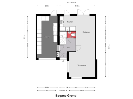 Parterre: hal/entree met trapopgang, meterkast (5 automaten), deels betegeld toilet met fontein en toegang naar de keurig afgewerkte bijkeuken/garage (ca. 6.14 x 2.99) met laminaatvloer, aanrechtblok met spoelbak, vaste wandkasten, aansluitpunt voor wasmachine en droger en deur naar de tuin, woonkamer (ca. 8.91 x 3.80/2.76) met plavuizenvloer en dubbele deuren naar terras en tuin, open keuken (ca. 2.14 x 2.41) met achterdeur en aanbouwcombinatie in hoekopstelling, ruime geheel omsloten achtertuin op Zuid-Oost met toegang naar het wandelpad langs het Julianakanaal;