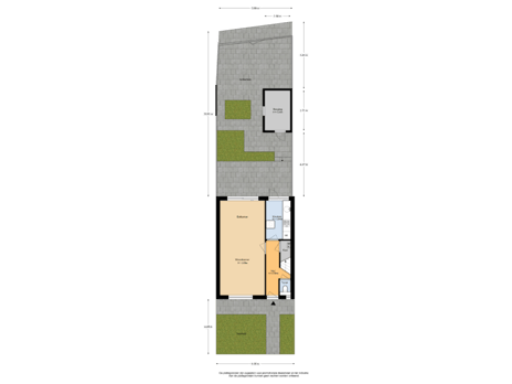 De achtertuin ligt op het zuidoosten en is grotendeels bestraat met enkele groene vakken. Halverwege staat een stenen berging met voldoende ruimte voor fietsen en tuingereedschap. De tuin biedt veel privacy en vormt een fijne plek om buiten te zitten. Aan de voorzijde is een kleine voortuin aanwezig die het huis wat van de straat scheidt.