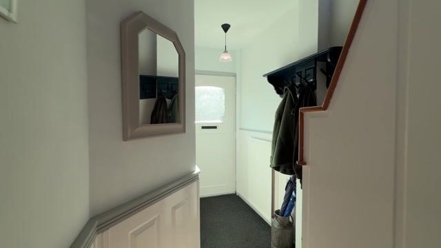 Via de entree kom je binnen in de hal met toegang tot het toilet. Vanuit hier loop je door naar de woonkamer. Dankzij de grote ramen is dit een lichte en prettige leefruimte. De vloer is afgewerkt met pvc en de wanden zijn voorzien van strak spachtelputz stucwerk.