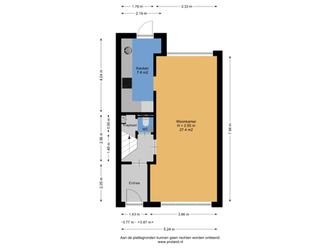 - 44 m² (8.00 metre deep and 5.50 metre wide)