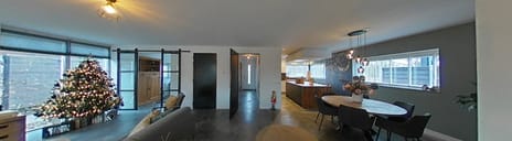 De woonkamer is ruim opgezet waardoor er gelegenheid is voor een royale, sfeervolle zithoek en een eethoek welke in relatie is met de keuken. Middels een schuifdeur is aan de voorzijde een werk-/speelkamer bereikbaar. De vloer is afgewerkt met een stoere betonlook en is voorzien van vloerverwarming. Verder kun je nog extra spullen kwijt in de praktische trapkast. Aan de achterzijde zijn er tuindeuren aanwezig, welke een mooie verbinding maken met de volledig af te sluiten buitenoverkapping/tuinkamer.