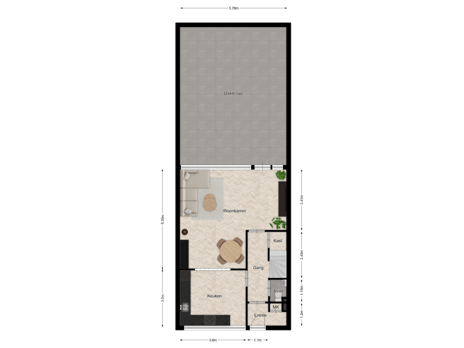 Het ruime dakterras is gelegen op het zuiden en biedt volop privacy. U kunt hier heerlijk buiten zitten, dineren of ontspannen in de zon, terwijl u uitkijkt over het gezellige centrum van Veendam. Zodra u de deur uitstapt, bevindt u zich direct in de winkelstraat met supermarkten, speciaalzaken, kledingwinkels en horeca. Parkeren kan eenvoudig in de directe omgeving. Ook het trein- en busstation liggen op loopafstand, waardoor de woning uitstekend bereikbaar is. De woning beschikt daarnaast over een berging, ideaal voor het stallen van fietsen of het opbergen van spullen.