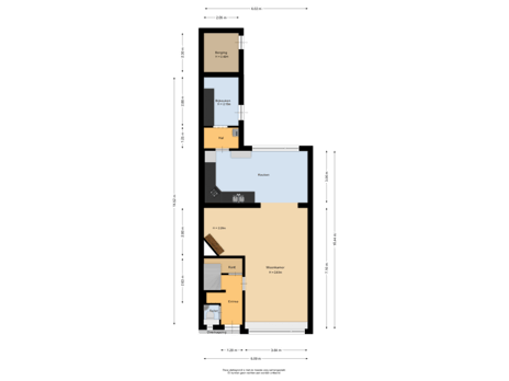- 107 m² (16.50 metre deep and 6.50 metre wide)