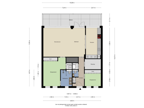 Entree, hal, slaapkamer, meterkast, toiletruimte, technische ruimte, inpandige berging, woonkamer, keuken, slaapkamer, kast met wasappartuuraansluiting, badkamer.