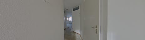 Derde verdieping: vanaf de overdekte galerij komen we bij de eigen entree van het appartement. We betreden het appartement en komen binnen in de ontvangsthal, welke toegang biedt tot alle vertrekken. Ook zijn hier de meterkast (5 groepen) en de toiletruimte ondergebracht. De toiletruimte is gedeeltelijk betegeld en voorzien van een toilet en een fonteintje.