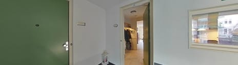 Via de verzorgde en goed onderhouden entree van het complex betreed je het gebouw. Je neemt de trap of de lift naar de eerste verdieping, waar zich meteen de voordeur van dit appartement bevindt.