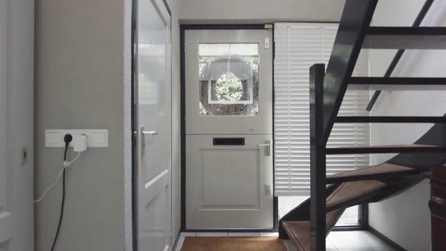 Via het pad aan de rechterkant van de woning loop je richting de voordeur, waar je binnenkomt in een ruime hal met garderobe, meterkast, het toilet en de trapopgang naar boven. Hier voel je meteen de prettige sfeer van het huis: ruim, licht en uitnodigend. Een fijne entree die je elke dag met een glimlach binnen laat komen.