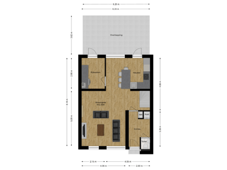 De combinatie van de warme houten vloer, de strakke wanden en de moderne afwerking zorgt voor een eigentijdse uitstraling. De royale raampartijen aan de voor- en achterzijde bieden veel lichtinval. Dankzij de airconditioning geniet u hier bovendien het hele jaar door van een aangename temperatuur.
