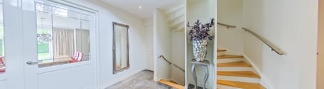Via de royale entree aan de voorzijde betreedt u de prachtige hal met hoog plafond en proeft u direct de sfeer van het huis. De hal vormt het centrale punt en biedt toegang tot diverse ruimtes. Hier treft u een praktische kast/garderobewand, een toiletruime, de trapopgang naar de eerste verdieping en naar het souterrain aan, maar ook heeft u via de hal toegang tot de keuken, eetkamer, TV kamer en het kantoor.