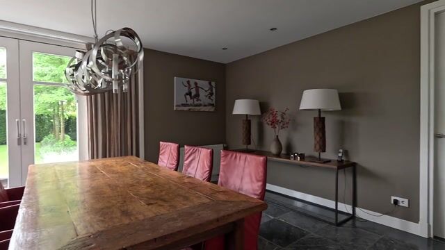 - Een ruime eetkamer (ca. 4.95 x 4.47 m), grenzend aan de keuken en aan de zitkamer. Vanuit deze ruimte heeft u prachtig zicht op de achtertuin door de aanwezige dubbele schuifpui.
