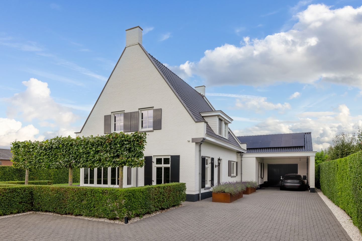 De sfeervolle villa, welke in 2009 is opgetrokken en tussen 2022 en 2024 grondig verbouwd is, ligt in een ‘’zeer centrale’’ omgeving. Het perceel is opvallend luxe uitgevoerd en