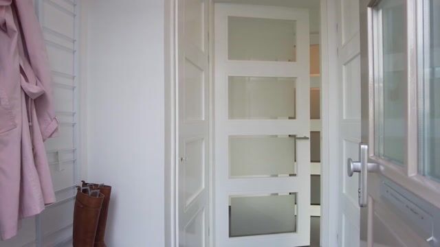 De vaste trap naar de tweede verdieping is eveneens afgewerkt met leren trapbekleding. Vanuit een overloop is de ruime 4e slaapkamer bereikbaar. Hier zijn tevens de aansluiting voor de wasmachine, de cv-ketel met ventilatie-warmtepomp en de omvormer voor de zonnepanelen gesitueerd. De vloer van deze verdieping is v.v. laminaat. De wanden zijn afgewerkt met stucwerk. De dakramen zijn van hout met HR++ glas en zijn v.v. screens.