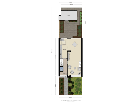 - 50 m² (8.40 metre deep and 6.00 metre wide)
