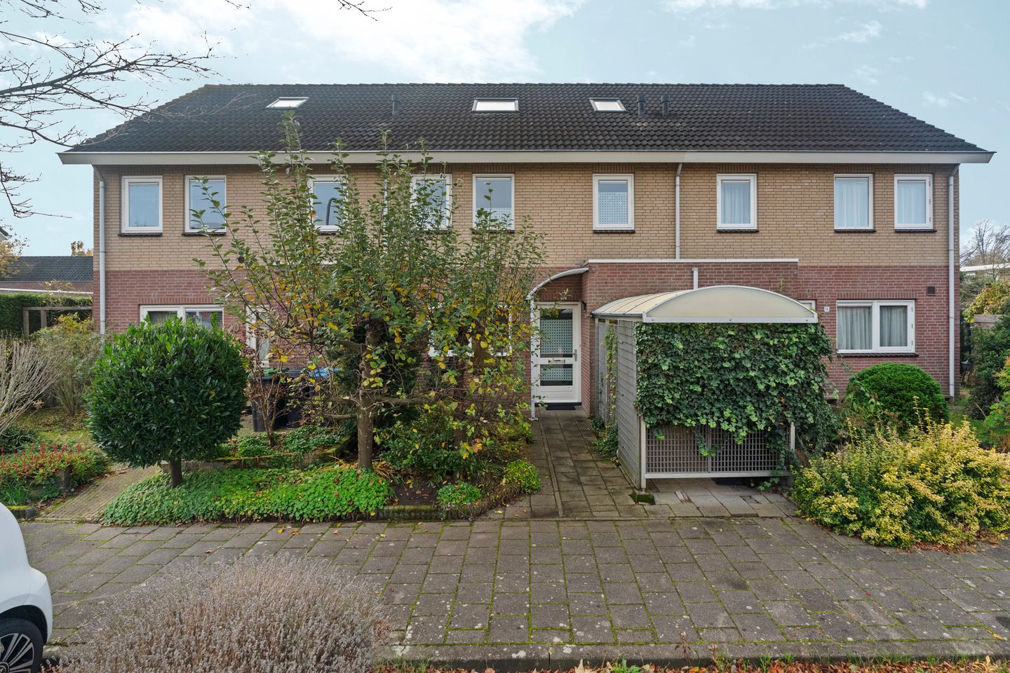 De voortuin geeft de toegang tot het huis al een prettig en groen aangezicht en is het ook nog eens voldoende groot om ruimte te bieden aan een fietsenberging.