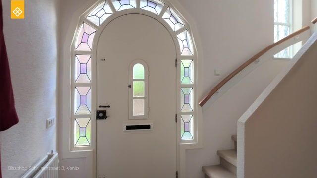 - Bij binnenkomst wordt u verwelkomd in een ruime en statige entreehal, waar de prachtige glas-in-looddetails direct een warme en karaktervolle indruk achterlaten. Vanuit de hal heeft u toegang tot de kelder, de trapopgang naar de eerste verdieping en het toilet, dat is voorzien van een staand closet en een fonteintje.