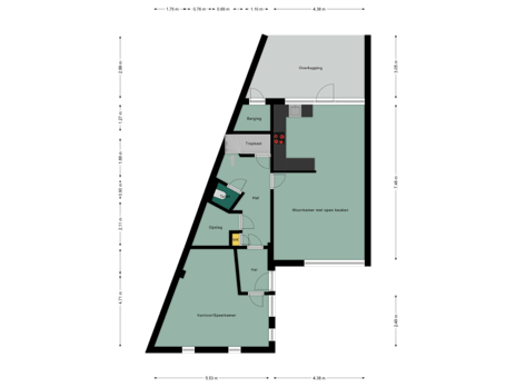 Middels de overdekte entree bereik je het voorportaal. Vanuit dit portaal heb je toegang tot de multifunctionele ruimte. Dankzij de ligging direct bij de entree en aan de voorzijde is deze ruimte perfect geschikt als thuiswerkplek, kantoor of praktijkruimte aan huis.