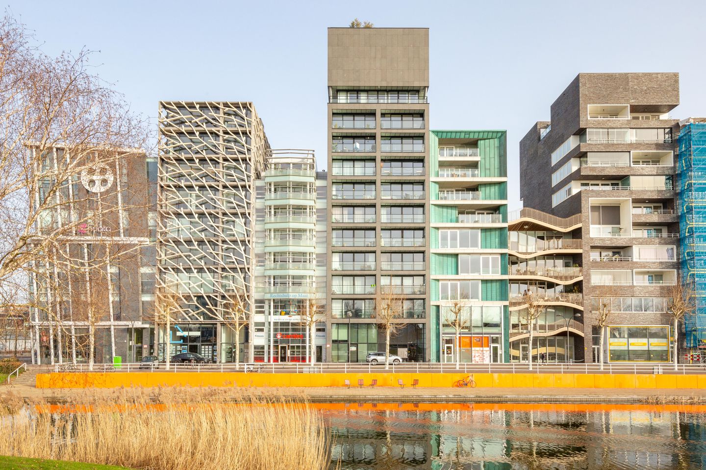 Achtste verdieping (appartement): Entree; hal met meterkast, toilet en toegang tot de woonkamer, twee slaapkamers en de badkamer; woonkamer van 44m² met twee schuifdeuren welke toegang bieden tot het een het balkon op het zuiden van 6 meter breed met uitzicht op een waterpartij; keuken uit 2024 in hoekopstelling en voorzien van onder meer een Quooker, oven, (wijn)klimaatkast, een Bora inductiekookplaat met interne afzuiging, vaatwasser en toegang tot de bijkeuken; bijkeuken met witgoedaansluitingen, de CV-opstelling en de mv-box (beide in 2021 vervangen) ; twee slaapkamers van respectievelijk 13,1- en 20,3m²; badkamer welke in 2021 is vervangen en is voorzien van volledige betegeling, een zgn. Japans toilet (toilet met bidetfunctie), een wastafelmeubel met 2 wastafels en 2 spiegels en een ruime inloopdouche met regendouche en een sunshower.
