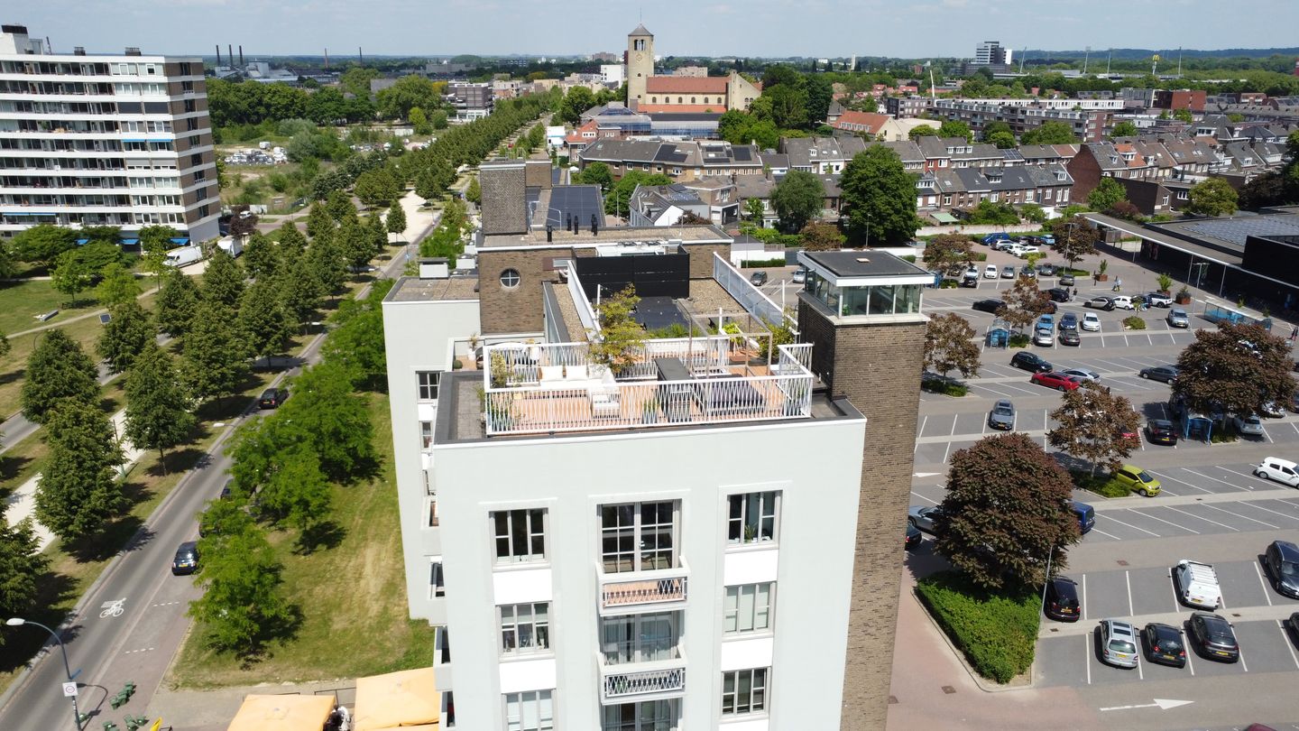 Een parel bovenin de iconische Gemeenteflat: dit unieke 3-kamer penthouse van 94 m² met torenkamer en maar liefst drie dakterrassen van in totaal 91 m². Gelegen aan het park van De Groene Loper, op de hoogste woonlaag, wacht hier een uitzonderlijke woonervaring op u met ongekend mooi uitzicht over Maastricht.