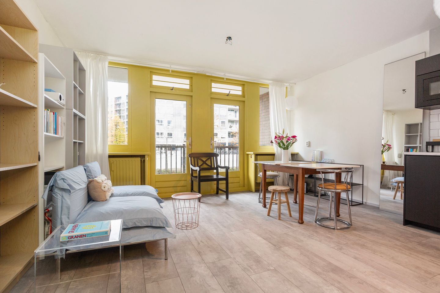 Woonkamer met open keuken: ± 21 m² met aansluitend balkon: ± 5 m²