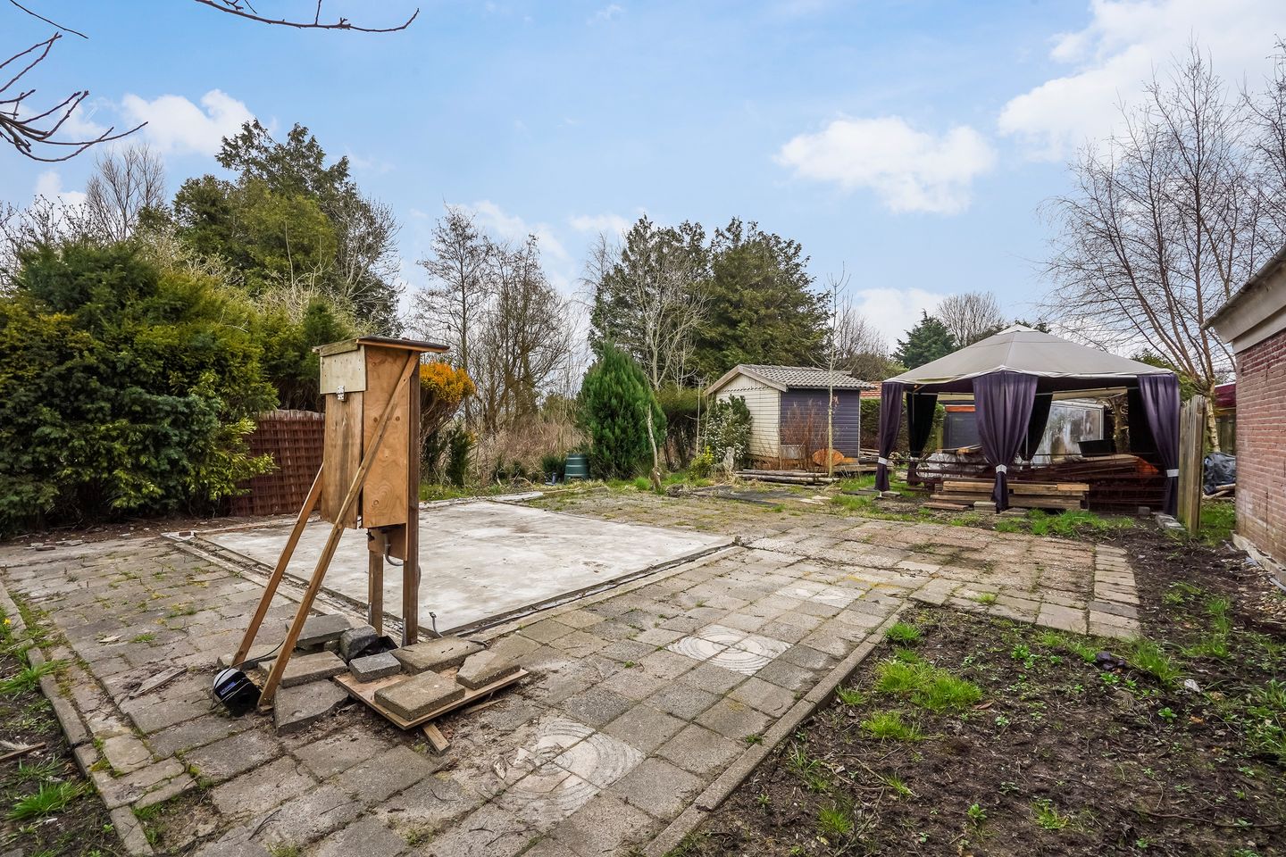De tuin is heerlijk royaal en biedt meerdere zonneterrassen, volwassen beplanting én een schuur voor opslag. Er is zelfs een betonnen fundering aanwezig waar voorheen een tuinhuisje op stond. Ook zijn bouwmaterialen en voorzieningen al deels aanwezig, wat een vliegende start mogelijk maakt!
