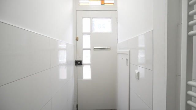 Je komt binnen via je eigen entree. In de keurig opgeknapte hal vind je een fraaie tegellambrisering, een moderne meterkast en de gestoffeerde trap naar de eerste verdieping.