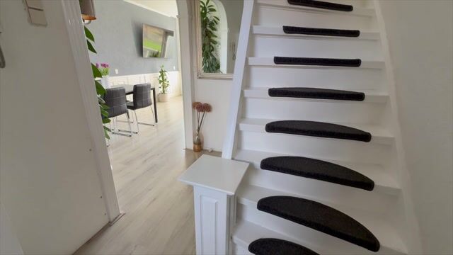 2e entree woning (om eventueel met de lift in de woning uit te komen), tochthal, ruime ontvangsthal met een vaste trap naar de slaapverdieping, een modern toilet met raampje welke in 2023 compleet vernieuwd is, hand wasbakje, gedeeltelijk betegeld in grijs/witte kleurstelling en een trap naar de kelder.
