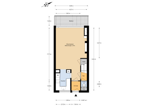 Via de galerij kom je bij de voordeur van de woning. De afsluitbare entree/hal biedt ruimte voor de garderobe. Vanuit hier kom je in de hal met Hongaarse punt laminaatvloer die doorloopt op de verdieping. Hier bevindt zich ook de beklede trap naar de slaapverdieping en het gestucte toilet met zwevend closet en cv-ketel.
