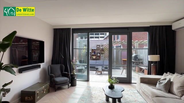 De tuingerichte woonkamer is door de bouwstijl van de woning zeer breed, vanuit de bouw met 1.20 meter uitgebouwd en door de grote hoeveelheid raampartijen komt veel natuurlijk licht de woning binnen. De gehele begane grond is voorzien van een houten visgraatvloer met een hoge witte plintafwerking, vloerverwarming, strakke wanden en airconditioning. Middels de openslaande deuren wordt de toegang verstrekt tot de zonnige achtertuin op het zuiden.