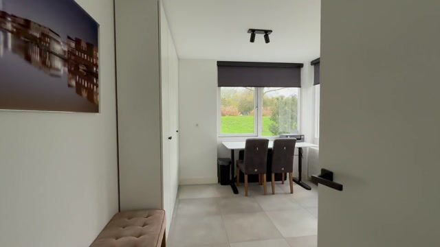 Aan de achterzijde bevindt zich een mogelijkheid voor een tv-hoek met vide, die prachtig zicht biedt op de singel en een hekwerk met radiator. In het verlengde ligt de moderne, greeploze grijze pantry van circa 6 m², voorzien van koelkast en spoelbak met Quooker.
