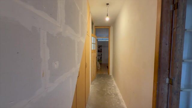 Vanuit de hal is er toegang tot de woonkamer, de keuken en de badkamer. Onder de trap is een vaste kast en de wanden en de vloer is naar wens af te werken.