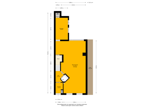 - 77 m² (12.00 metre deep and 6.40 metre wide)