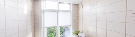 De keuken is eenvoudig en wat gedateerd, maar netjes onderhouden en volledig naar eigen smaak te moderniseren. Vanuit de keuken én de slaapkamer is er toegang tot het balkon, waar je kunt genieten van de zon en het uitzicht over de achtergelegen binnentuinen.