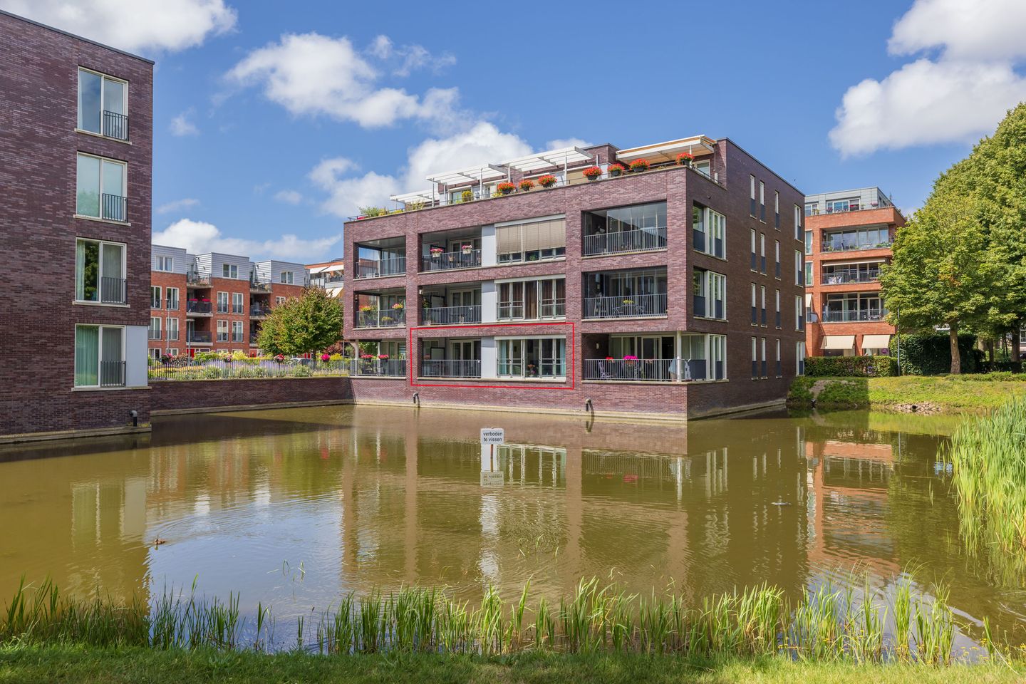 This spacious 3-room apartment with unobstructed views of a water feature and greenery is located in the heart of Voorhout's charming town center. Situated on the ground floor of the stylish "Clusius I" building, the apartment features a sunny southeast-facing balcony, a private storage unit, and a parking space in the underground parking garage.