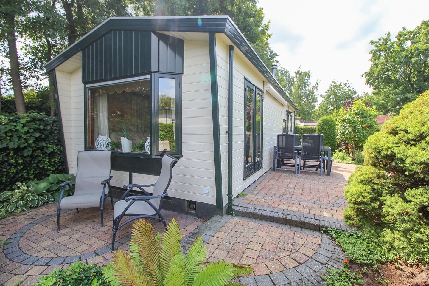 Aangeboden wordt dit recreatiechalet met berging gelegen op een mooie kavel op het gedeelte Welgelegen. Het gedeelte Welgelegen welke gelegen is in een bosrijke omgeving biedt u rust, ruimte en privacy en maakt deel uit van Landgoed De IJsvogel, waar diverse faciliteiten aanwezig zijn waar u gebruik van kunt maken, zoals o.a. een overdekt en openlucht zwembad, een restaurant en bowlingbanen. Tevens is het park gelegen op korte afstand van het gezellige dorp Voorthuizen waar vooral in de zomermaanden van alles te beleven valt, het bos is op loopafstand gelegen. Het chalet verkeerd in een nette staat van onderhoud (bouwjaar 2001) en is voorzien van houten kozijnen, keurig onderhouden buitenbekleding, dakpanplaten op het dak, een pelletkachel en een airco. Bij het chalet ligt een grotendeels bestrate tuin met een riant terras, volgroeide beplating en een houten berging met wasmachine. Er is parkeerruimte voor uw auto bij het chalet op eigen terrein. Het chalet is op een betonplat geplaatst waardoor het vestigen van een stukje hypotheek mogelijk is.