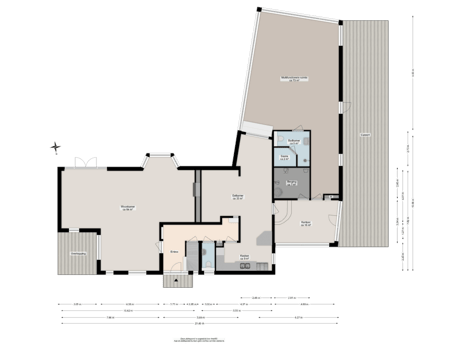 Een grote lichte hal aan de voorzijde (ook te gebruiken als kantoor of werkruimte of ontvangstruimte) met zijentree bij de carport. Aansluitend de bijkeuken met extra aanrecht incl. spoelbak, plaats voor wasmachine + droger en de cv-opstelling (2x cv Nefit + boiler). Grote multifunctionele ruimte van maar liefst 73m² met vloerverwarming, grote glaspuien waardoor heerlijk licht en 3x een grote schuifpui. Deze ruimte beschikt over een zijdeur naar de carport, aansluitingen aanwezig voor een extra keuken. Hier vind u ook de badkamer op de begane grond met inloopdouche, wastafel, toilet en sauna.