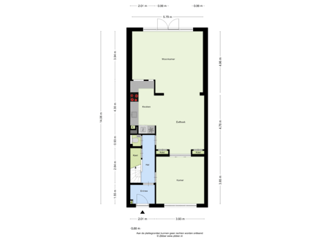 - 83 m² (14.76 metre deep and 6.43 metre wide)