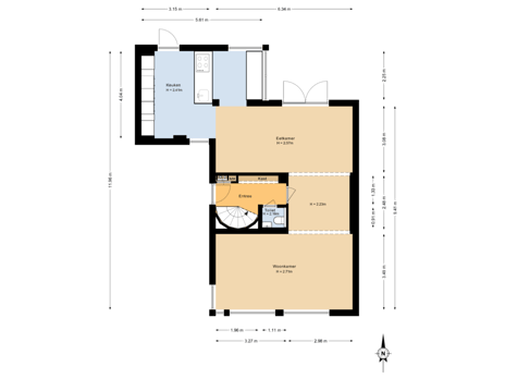 De woning is zorgvuldig professioneel ingemeten. De Meetinstructie is gebaseerd op de NEN2580. De Meetinstructie is bedoeld om een meer eenduidige manier van meten toe te passen voor het geven van een indicatie van de gebruiksoppervlakte. De Meetinstructie sluit verschillen in meetuitkomsten niet volledig uit, door bijvoorbeeld interpretatieverschillen, afrondingen of beperkingen bij het uitvoeren van de meting.
