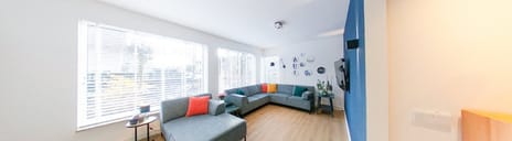 Allereerst maar naar het zitgedeelte aan de voorzijde. Het ligt net iets verdiept waardoor er een speelse verdeling ontstaat waar je heerlijk kunt relaxen/loungen met hele gezin. Het is erg groot en er zijn ramen over de volle breedte én ook nog een zijraam waardoor het een hele lichte ruimte is.
