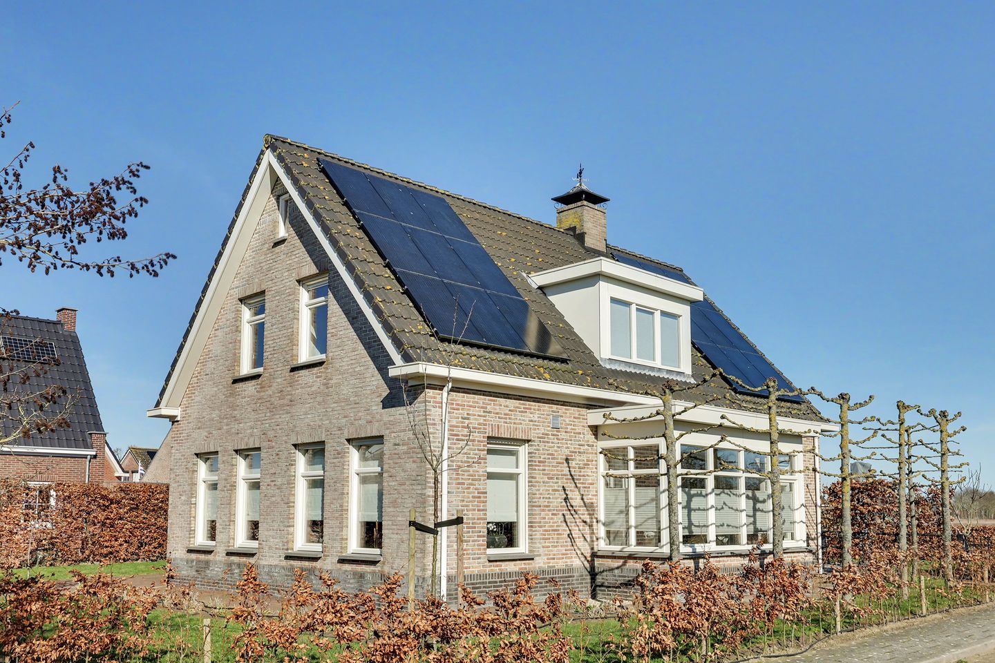 Rondom de woning ligt een verzorgde tuin met een combinatie van gazon, beplanting en bestrating. Aan de achterzijde van de woning bevindt zich een ruime zitplek waar u heerlijk buiten kunt zitten en kunt genieten van de rust en het vrije uitzicht over de omliggende landerijen.