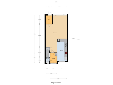 - 64 m² (11.07 metre deep and 5.75 metre wide)