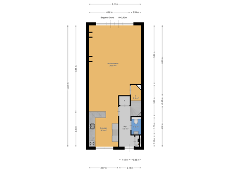 Toelichtingsclausule BBMI: de woning is ingemeten conform de branchebrede meetinstructies (BBMI), afgeleid van de NEN 2580 normering. De Meetinstructie is bedoeld om een meer eenduidige manier van meten toe te passen voor het geven van een indicatie van de gebruiksoppervlakte. De Meetinstructie sluit verschillen in meetuitkomsten niet volledig uit, door bijvoorbeeld interpretatieverschillen, afrondingen of beperkingen bij het uitvoeren van de meting.
