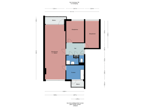 De oppervlakte van de woning is opgemeten aan de hand van de (BBMI) Meetinstructie. Deze meetinstructie is een afgeleide van de NEN2580. De meetinstructie is bedoeld om een meer eenduidige manier van meten toe te passen voor het geven van een indicatie van de gebruikersoppervlakte. De meetinstructie sluit verschillen in meetuitkomsten niet volledig uit, door bijvoorbeeld interpretatieverschillen, afrondingen of beperkingen bij het uitvoeren van de meting. De oppervlakte is een indicatie en de juistheid ervan wordt niet gegarandeerd. Koper is in de gelegenheid gesteld de woning en het perceel na te meten.