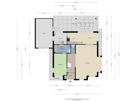 Begane grond: entree met meterkast. Ruime hal met trapopgang naar de 1e verdieping en (gasten-)toilet voorzien van wandcloset en fonteintje. Riante woonkamer met veel ramen, voorzien van elektrische screens en en-suite deuren naar de woonkeuken. Woonkeuken met eethoek met openslaande deuren naar de veranda in de achtertuin en keuken in L-opstelling, voorzien van inductiekookplaat, afzuigkap, combi-oven, koelkast en vaatwasser. Bijkeuken met cv-opstelplaats, gootsteen, aansluiting voor de wasapparatuur en deur naar de aangebouwde garage ter grootte van circa 26,5 m², welke beschikt over een deur naar de achtertuin. Slaapkamer ter grootte van circa 15 m², met ruime badkamer-en-suite voorzien van ligbad, wastafel, inloopdouche en wandcloset.