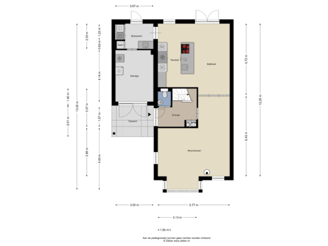 Bij binnenkomst bevind je je in een ruime woonkamer met een grote erker. Tussen de woonkamer en woonkeuken zijn grote taatsdeuren geplaatst, waardoor je de ruimtes kan afsluiten maar er ook een grote open ruimte van kan maken. De moderne woonkeuken met kookeiland en hoogwaardige apparatuur heeft prachtig uitzicht op de tuin en biedt ruimte voor een grote eettafel voor lange dinersessies. Met geopende tuindeuren kan in de zomer moeiteloos één geheel met de tuin worden gecreëerd. Vanuit hier bereik je ook de praktische bijkeuken met de wasmachine aansluiting en de aangebouwde stenen garage.