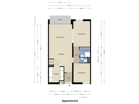 Via de galerij aan de buitenzijde van het appartementencomplex is er toegang tot de entree van het appartement. Hier bevindt zich tevens de meterkast.