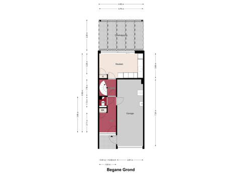 - 46 m² (9.40 metre deep and 4.90 metre wide)
