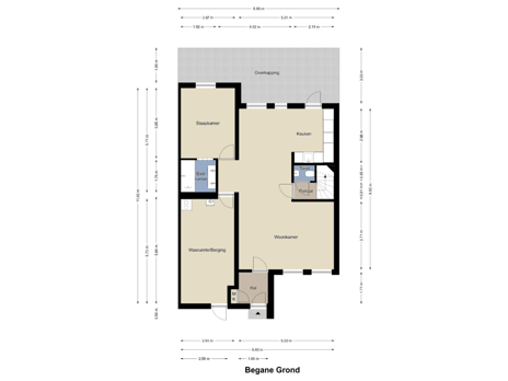 Ruime ontvangsthal met meterkast en garderobe. Vanuit de hal is er toegang tot de woonkamer. De woonkamer is toegankelijk via een deur met glas. De hal, woonkamer en keuken zijn afgewerkt met dezelfde tegelvloer. De begane grond is vrijwel geheel voorzien van vloerverwarming.